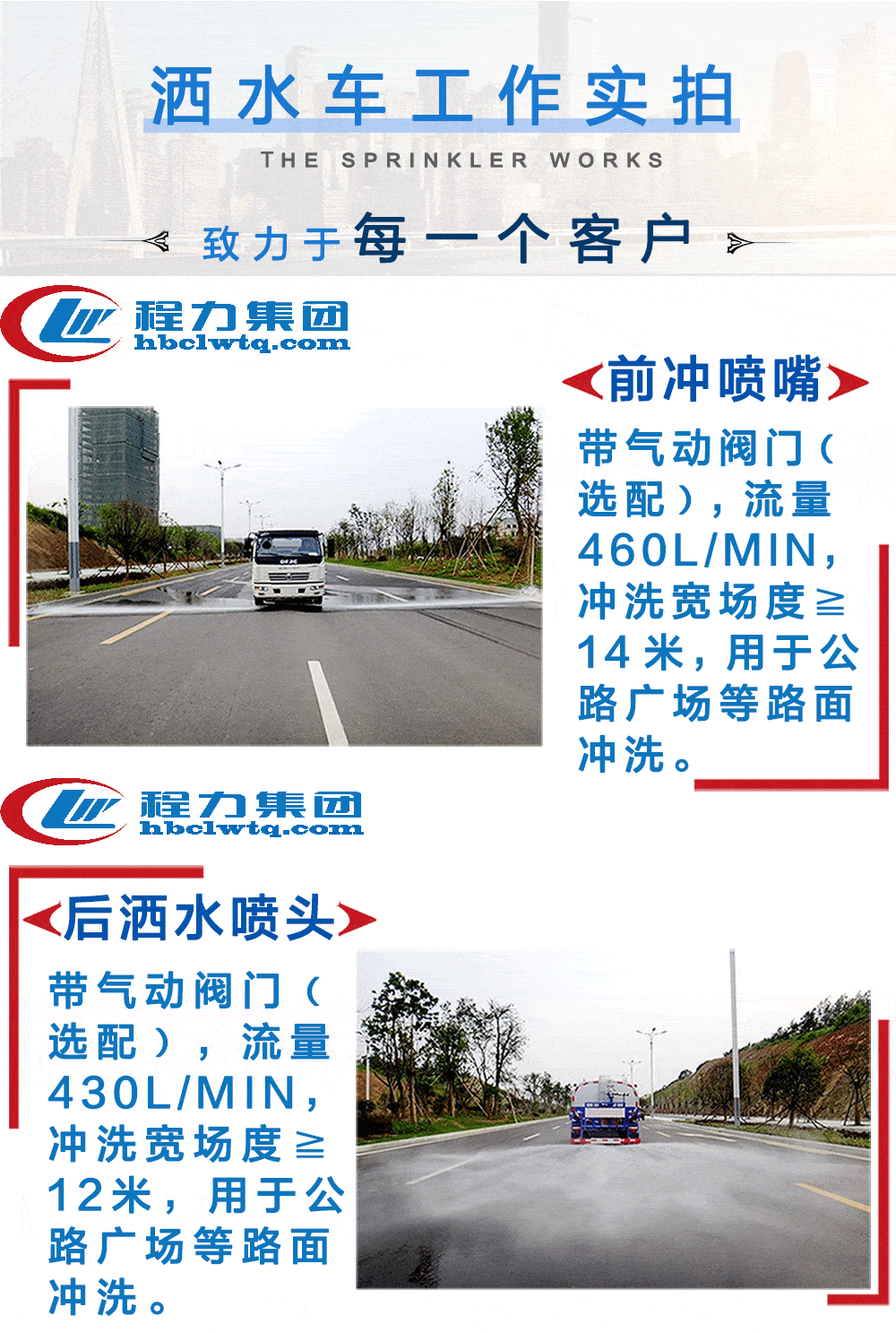公司产品出口三十多个国家,国内两千多家洒水车服务站,拥有一套完善的质量和售后服务体系,让您购车无忧!